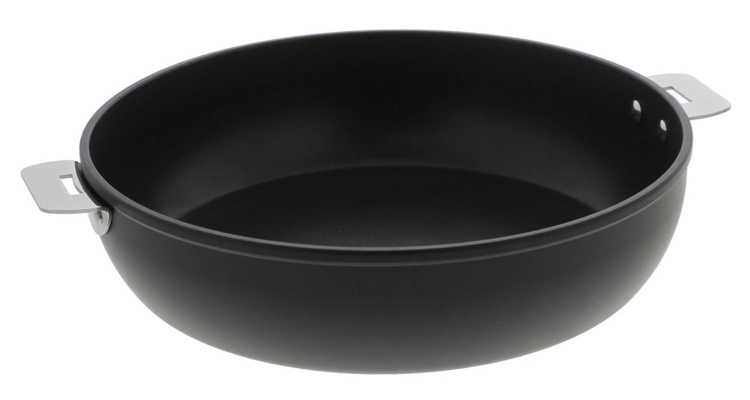 De Cristel Cookway Two sauteerpan heeft een diameter van 28 cm en is 7 cm hoog. Door de hoge zijwanden kunt u de man goed als sauteuse of hapjespan gebruiken. Aan twee zijden zit een metalen greepje waaraan een steel of een stel handgrepen kan worden bevestigd. De sauteerpan bestaat uit een basis van gegoten aluminium met een stevige anti-aanbaklaag. De bodem is voorzien van een roestvrijstalen plaat. Gebruik de sauteerpan op elke warmtebron en in de oven om uw gerechten aan te bakken.