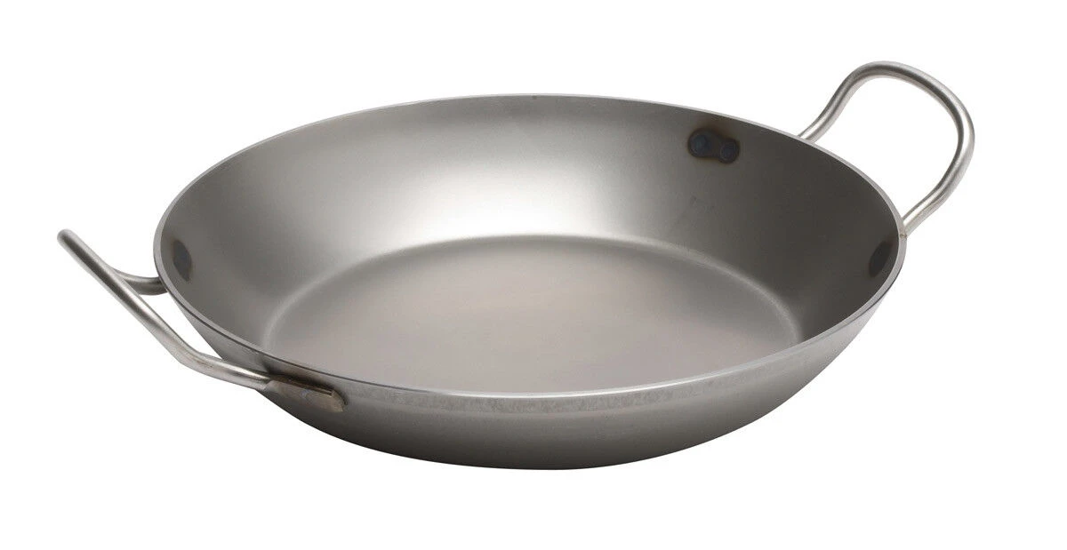De ronde De Buyer paellapan is van plaatstaal en heeft een diameter van 24 cm. Dit materiaal geleidt warmte optimaal en verdraagt hoge temperaturen. 2 handgrepen vergroten het gebruiksgemak.