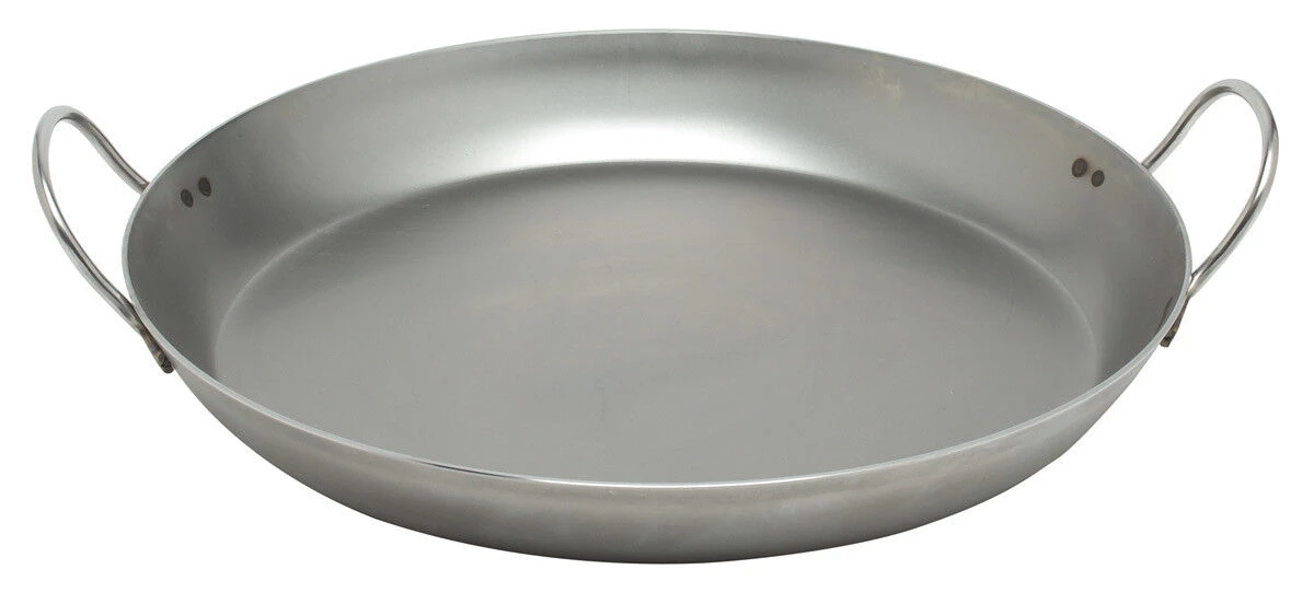 De De Buyer Carbone Plus paellapan is vervaardigd uit plaatstaal en voorzien van 2 handgrepen. De pan heeft een diameter van 50 cm, een bodemdiameter van 40 cm. Het plaatstaal heeft een dikte van 2,5 mm. Gebruik de pan voor het maken van paella’s of het bakken van vlees, vis of groenten. Geschikt voor gebruik op gas, halogeen, keramiek en elektrische fornuizen.