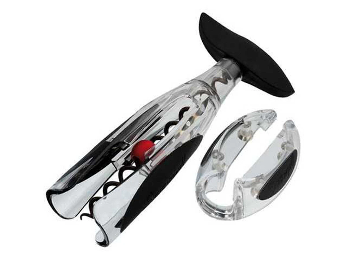 Screwpull Trilogy tafelmodel kurkentrekker met meegeleverde capsulesnijder. Uitgevoerd in doorzichtig kunststof met antislipgrepen. Met de kurkentrekker ontdoet u wijnflessen zonder trekken van de kurk door eenvoudig door te blijven draaien. Met de meegeleverde capsule snijder snijdt u met een handomdraai de capsule van de fles.
