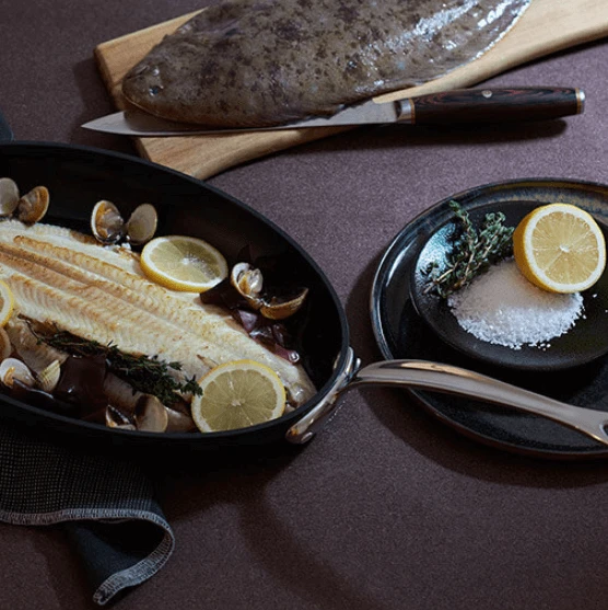 De pan heeft vastgeklonken roestvrijstalen handgrepen die bij juist gebruik koel blijven. De pan is geschikt voor alle warmtebronnen, inclusief de oven tot 260°C. Vermijd krassen en gebruik bij voorkeur houten-, silicone-, of kunststofgereedschappen in de pan.