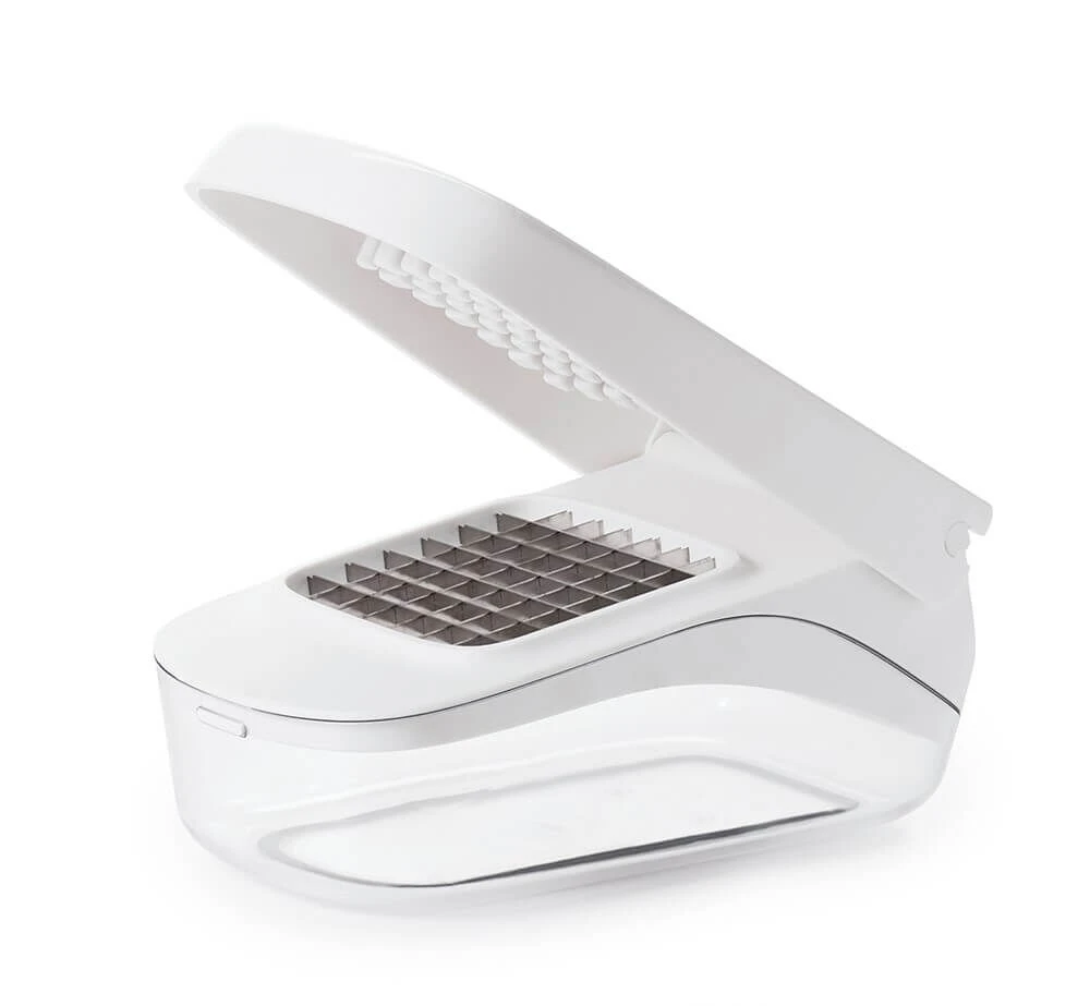 Door het hefboomeffect is de groentesnijder van OXO Good Grips eenvoudig en met één hand te bedienen. Het ontwerp is voorzien van een antislip-rand aan de onderkant, zodat u kunt rekenen op stevige grip terwijl u zachtjes druk uitoefent.