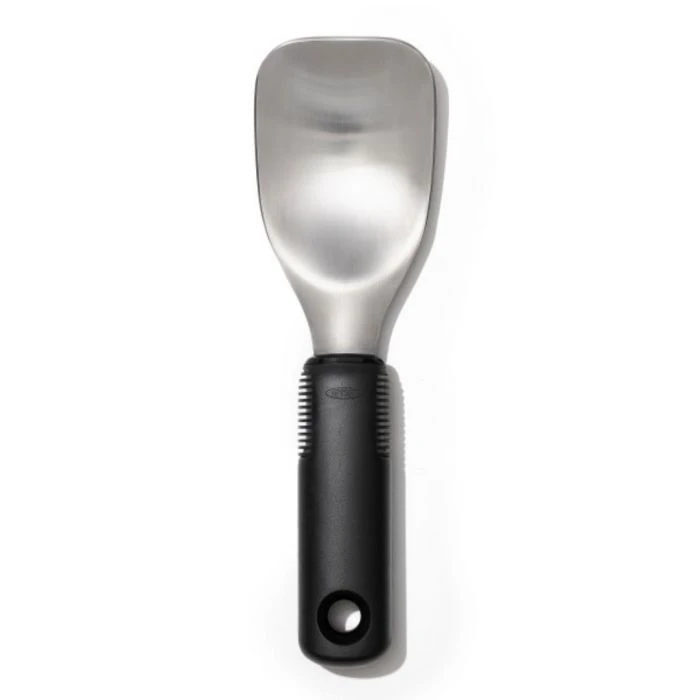 De OXO Good Grips grote ijsschep is gemaakt van roestvrij staal en kunststof. De schep heeft een ophang oog aan het uiteinde van de handgreep. Gebruik de schep voor het eenvouding scheppen van ijs.