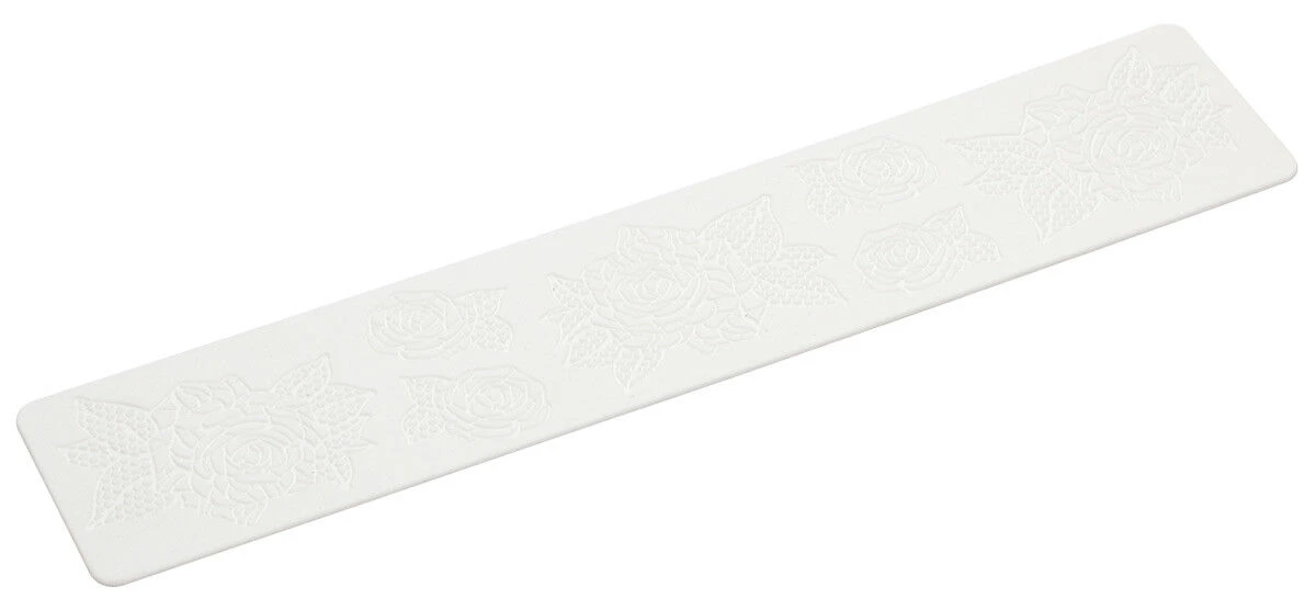 De Silikomart Tricot Roses siliconen decoratiemat is 40 cm lang en 8 cm breed. Voorzie uw taarten, cupcakes of koekjes van decoratieve en smakelijke suikerlagen.