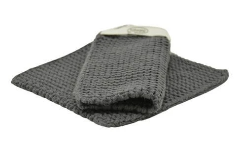 De Solwang Design pannenlap is vervaardigd uit donkergrijskleurig 100% katoen . De theedoek is 22 cm lang, 22 cm breed en is voorzien van een sterke ribbelsteek voor optimale thermische isolatie. De Solwang Design pannenlap is voorzien van een ophanglusje.
