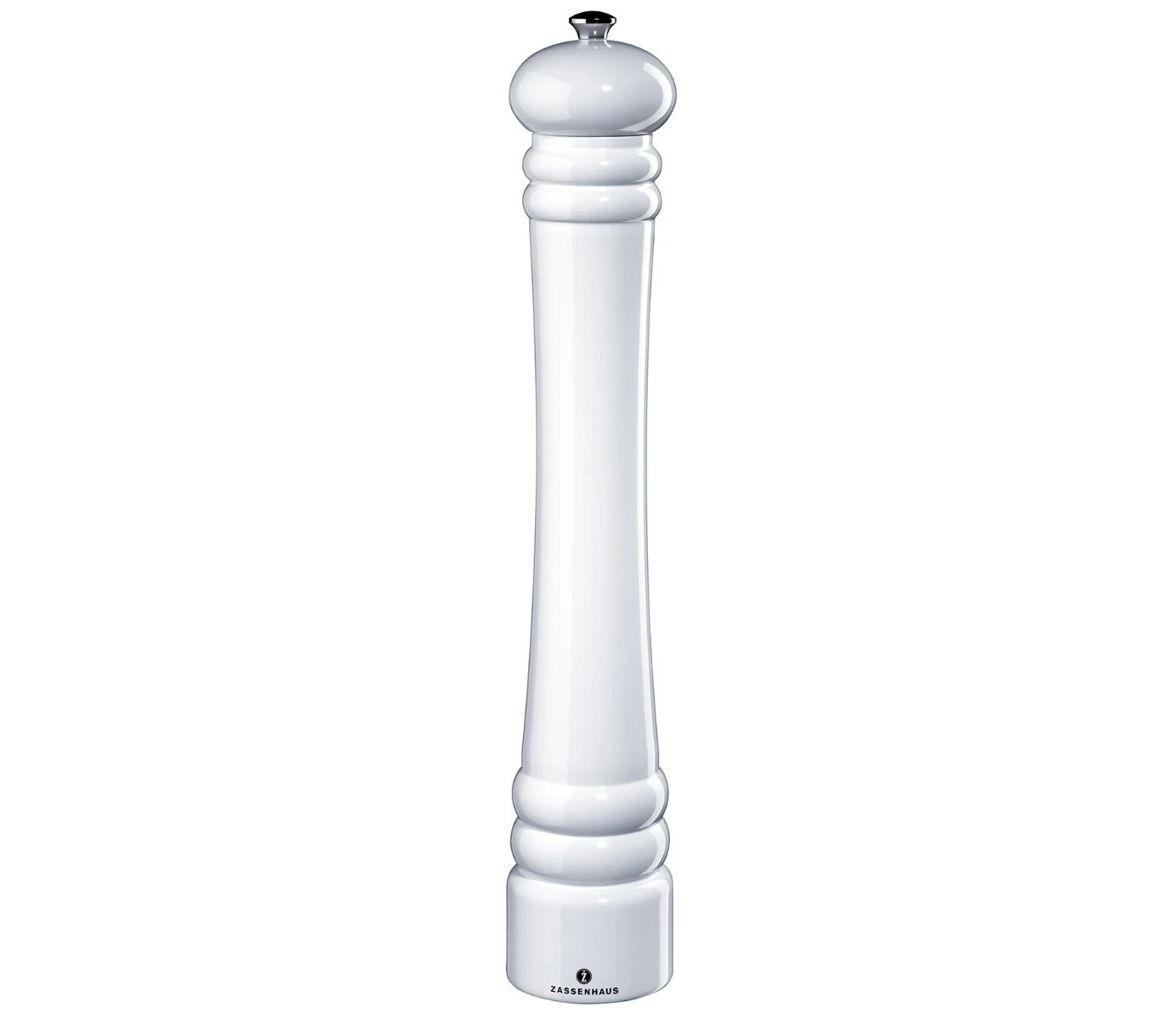 De Zassenhaus Berlin pepermolen glanzend wit heeft een klassiek uiterlijk. De pepermolen is glanzend wit gelakt en heeft een keramisch maalwerk. De pepermolen van Zassenhaus is 40 cm hoog, en heeft een diameter van 6,9 cm.